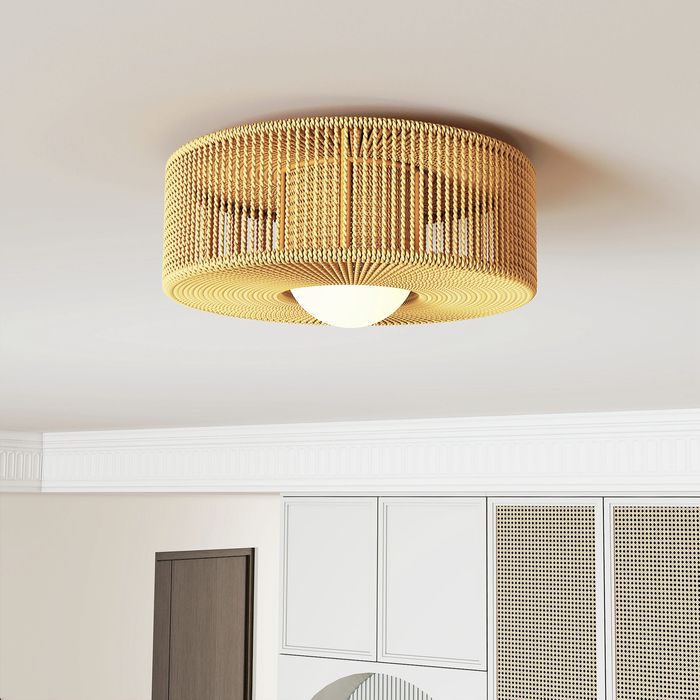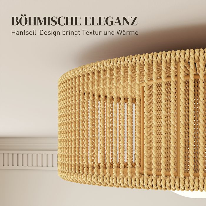 - Bohemian Charm: Bestaunen Sie eine eindrucksvolle Deckenlampe mit ihrem attraktiven Schirm aus Hanfseil, der Ihrem Zuhause natürliche Eleganz verleiht und einen stilvollen, gemütlichen Blickfang bietet.