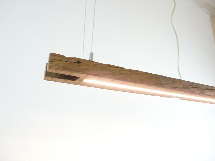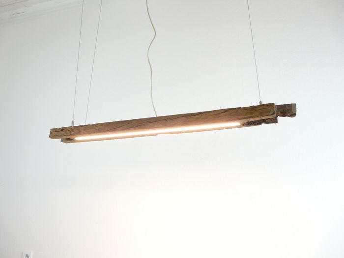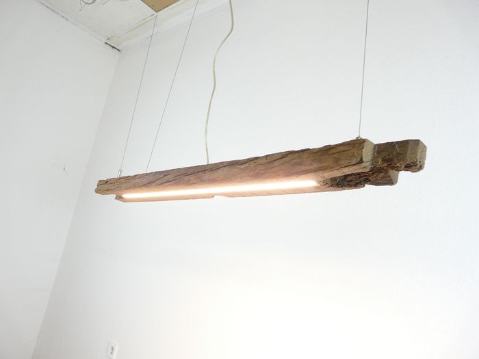 Ein mehrere hundert Jahre alter Holzbalken wurde zu einer aussergewöhnlichen Lampe gefertigt.