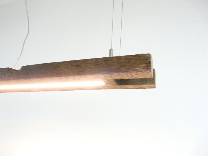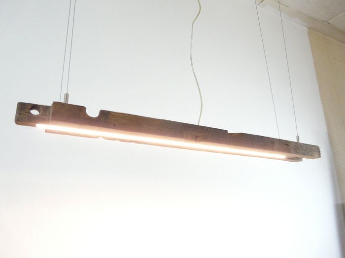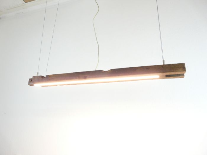 Ein mehrere hundert Jahre alter Holzbalken wurde zu einer aussergewöhnlichen Lampe gefertigt.