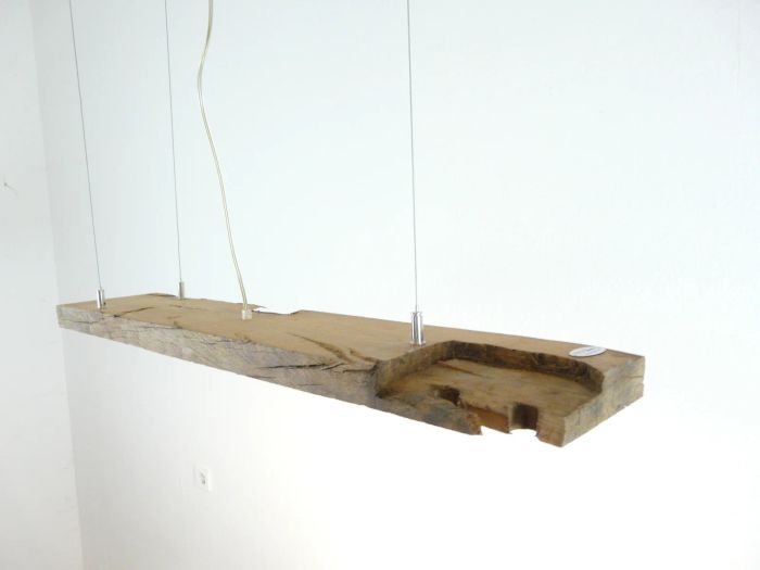 Ja, jeder Balken ist ein echtes Einzelstück. Maserung, Risse, Astlöcher und die natürliche Patina unterscheiden sich von Lampe zu Lampe. Genau dieser individuelle Charakter macht jede Hängelampe besonders.