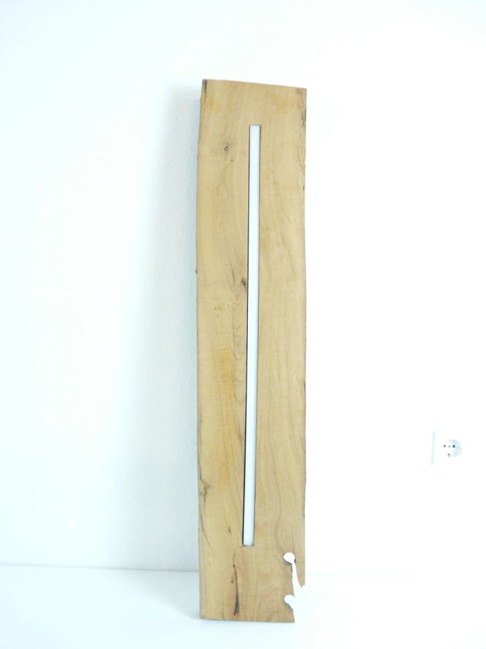 Im Eichenbalken ist eine LED-Lichtleiste integriert, die ihr Licht gleichmässig nach unten abgibt. Mit etwa 1400 Lumen entspricht die Helligkeit ungefähr einer 70-Watt-Normallampe – ideal, um die Tischfläche gut auszuleuchten, ohne zu blenden.