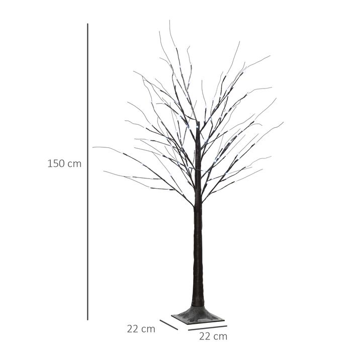 Künstliche Birke mit LED-Beleuchtung, 96 warmweisse Mikro-LEDs, 150 cm, Braun