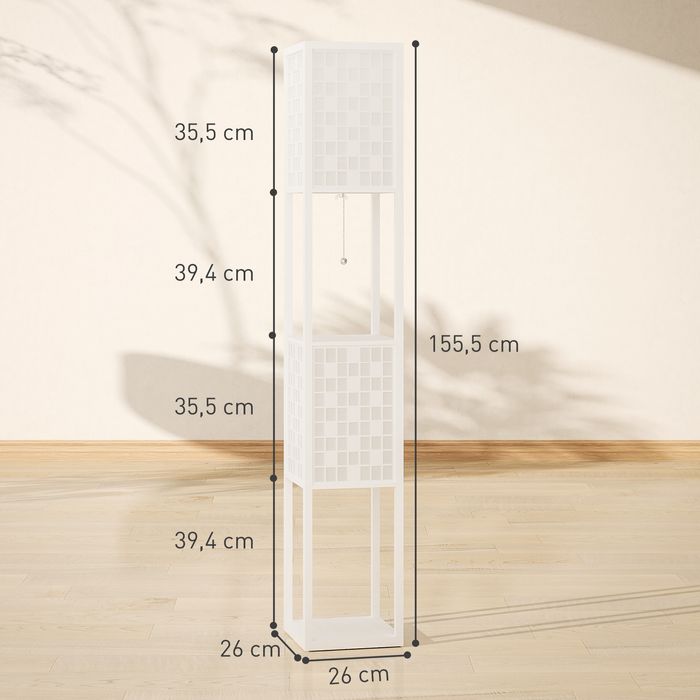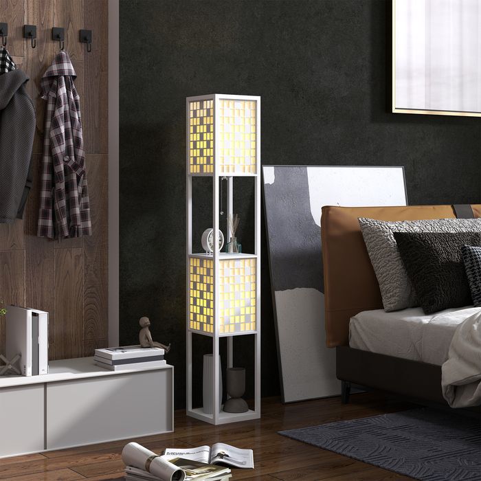 Erhellen Sie Ihren Raum stilvoll! Die elegante HOMCOM Stehlampe mit ihrem charmanten Gittermuster-Lampenschirm zaubert bezaubernde Lichteffekte. Profitieren Sie von praktischen Doppelregalen für mehr Stauraum oder Dekoration. Einfache Bedienung durch einen Inline-Fussschalter und eine separate Zugschnur für das obere Licht. Perfekt für Räume, die eine warme Ausstrahlung wünschen.