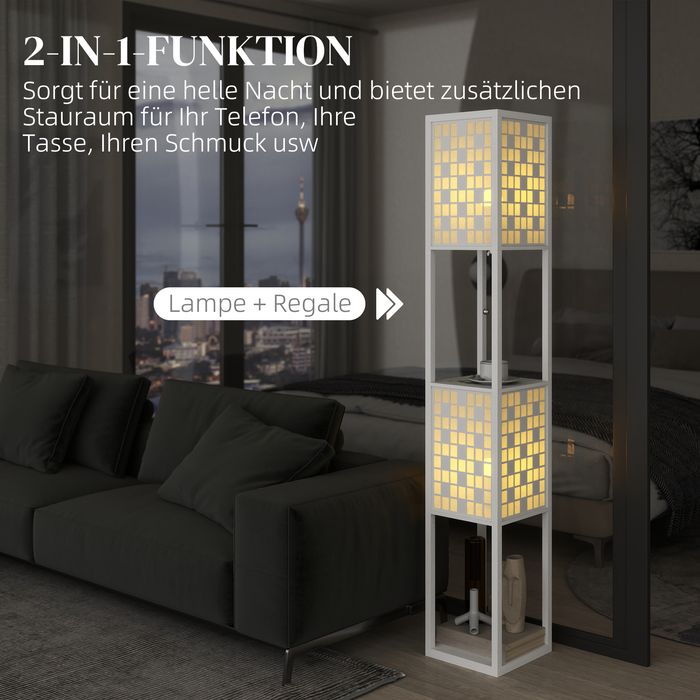 Stehlampe, Gittermuster, 2-Ebenen-Regale, für verschiedene Glühbirnen, Weiss