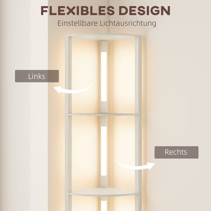 LED Standleuchte, dimmbar, 4 Ablagen, warmweiss, 41x30x164cm, Eiche