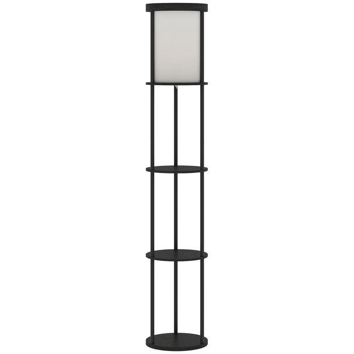 Stehlampe mit 3 Regalen, rund, Fernbedienung, Fussschalter, verstellbar, Schwarz