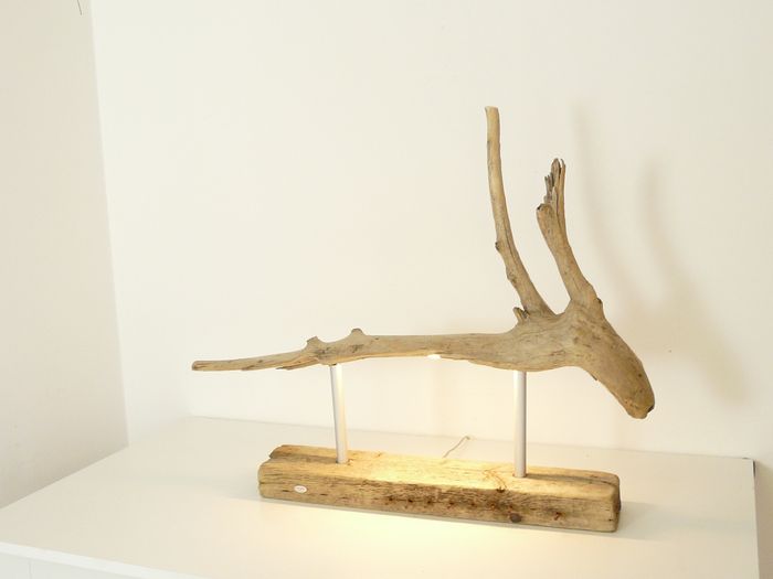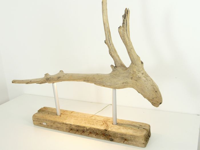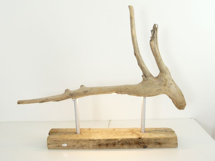 Diese markante Tischleuchte verbindet kunstvolles Treibholz mit moderner Beleuchtungstechnik und wird so zum stimmungsvollen Blickfang in Ihrem Wohnraum. Mit einer Höhe von ca. 103 cm und einer Breite von rund — cm (je nach Stück leicht variierend) präsentiert sich das Designstück als skulpturales Lichtobjekt – ideal für Wohnbereiche, Lofts oder grosse Sideboards.